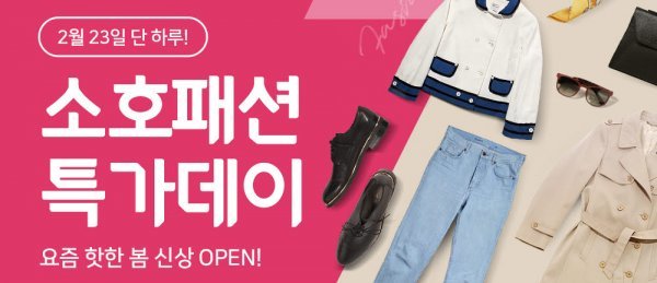난닝구·모카썸·골드앤·착한구두 등 2030 인기 소호몰의 봄 신상 의류·잡화 상품으로 구성한 원데이 할인 프로모션이다. 최대 할인 가격으로 시즌 상품을 선보인다.