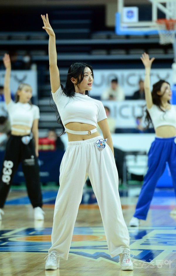 22일 아산 이순신체육관에서 열린 ‘신한은행 SOL 2022~2023 여자프로농구’ 우리은행과 BNK 썸 경기에서 치어리더가 공연을 펼치고 있다.