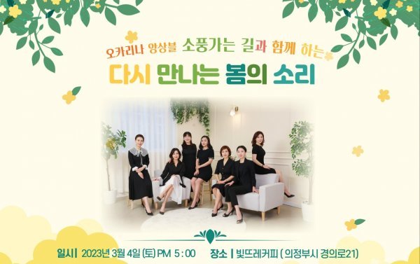타이틀은 ‘다시 만나는 봄의 소리’. 3월 4일 토요일 오후 5시, 빛뜨레커피(의정부시 경의로21)에서 열린다.