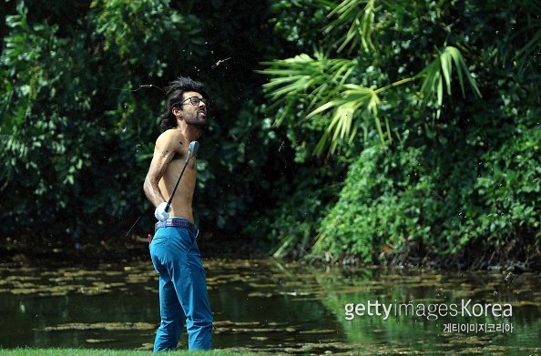 바티아는 이날 6번(파4) 홀에서 ‘1차 상의 탈의’를 해야 했다. 티샷이 페어웨이 왼쪽 물에 빠지자 벌타를 받는 대신 이를 그대로 치기로 했다. 결국 상의를 벗고 물로 들어가 두 번째 샷을 시도했고, 공을 페어웨이에 올려 힘겹게 파를 지켜냈다. 물에 흠뻑 젖은 그는 여자친구가 가져다 준 새 모자와 상의, 신발을 갈아 신고서야 다음 홀로 향했다.