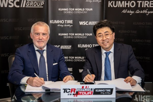 금호타이어(대표 정일택)는 지난 23일(현지시간) TCR 대회 운영사인 WSC(World Sporting Consulting)그룹과 ‘금호 TCR 월드 투어(KTWT, KUMHO TCR World Tour)’ 타이틀 스폰서십을 체결했다. 이날 체결식에는 금호타이어 이강승 유럽본부장 전무, 윤장혁 G.마케팅담당 상무와 WSC그룹 마르첼로 로티회장, 눈지아 코르비노최고 운영 책임자를 비롯한 양측 관계자들이 참석했다.