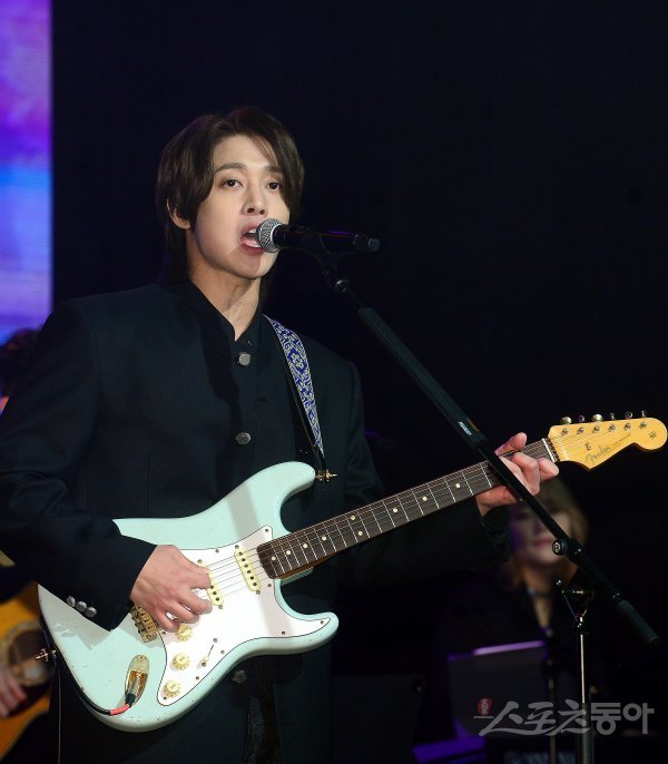 가수 김현중이 27일 오후 서울 강남구 일지아트홀에서 열린 세 번째 정규앨범 ‘MY SUN(마이 선)’ 발매기념 쇼케이스에 참석해 공연을 펼치고 있다.