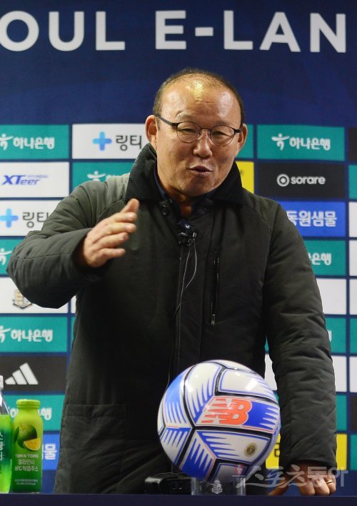1일 서울 목동운동장 주경기장에서 열린 ‘하나원큐 K리그2 2023’ 서울 이랜드FC와 충북청주FC의 경기에서 박항서 감독이 취재진과 기자회견을 하고 있다. 목동 | 주현희 기자 teth1147@donga.com