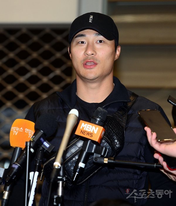 WBC에 출전하는 한국야구대표팀이 미국 애리조나 훈련을 마치고 1일 인천국제공항을 통해 귀구했다. 야구대표팀 김하성이 인터뷰를 하고 있다.