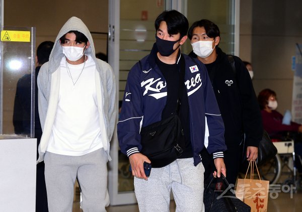 WBC에 출전하는 한국야구대표팀이 미국 애리조나 훈련을 마치고 1일 인천국제공항을 통해 귀국했다. 야구대표팀 이정후, 고영표, 소형준이 피곤한 모습으로 출국장을 나서고 있다.
