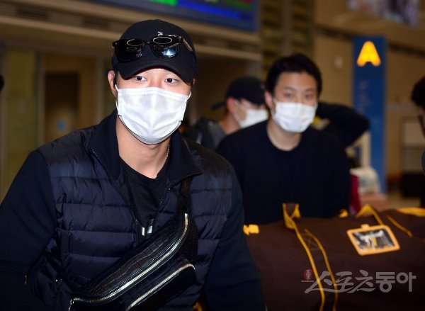 WBC에 출전하는 한국야구대표팀이 미국 애리조나 훈련을 마치고 1일 인천국제공항을 통해 귀국했다. 야구대표팀 김하성이 출국장을 나서고 있다.