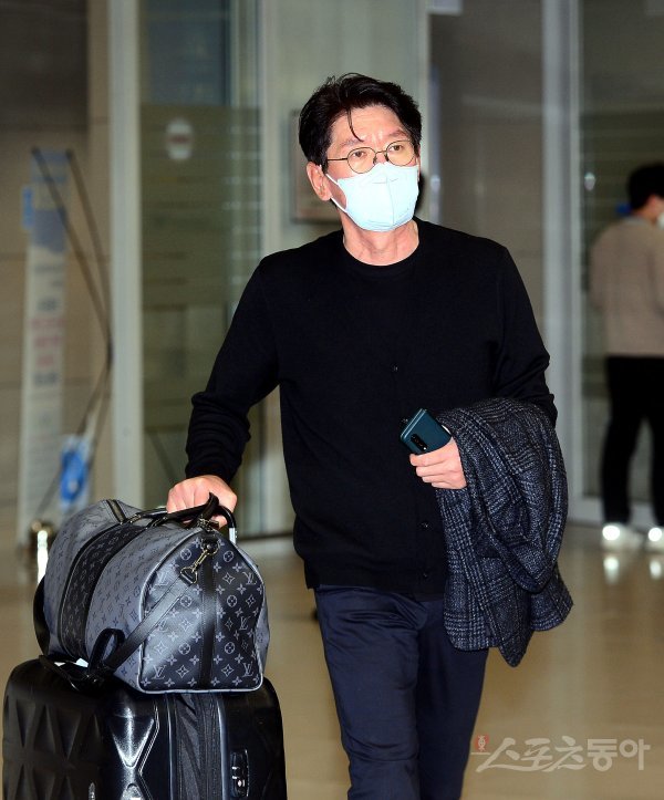WBC에 출전하는 한국야구대표팀이 미국 애리조나 훈련을 마치고 1일 인천국제공항을 통해 귀국했다. 야구대표팀 이강철 감독이 출국장을 나서고 있다.