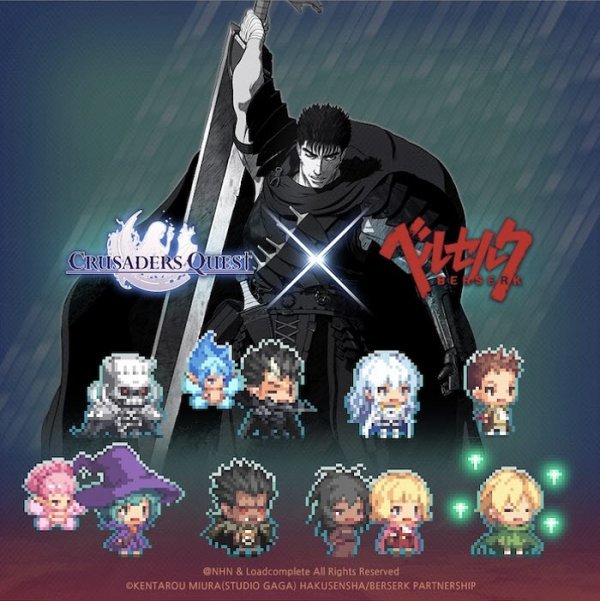 NHN은 모바일 역할수행게임(RPG) ‘크루세이더 퀘스트’가 9일 ‘베르세르크 컬래버레이션’ 이벤트를 시작한다고 밝혔다. 베르세르크는 1989년 연재 시작 후 글로벌 5500만 이상 누적 발행되며 전 세계적으로 많은 팬을 보유한 만화다. 이번 협업을 통해 원작에 등장하는 ‘가츠’, ‘그리피스’, ‘파르네제’, ‘세르피코’등 캐릭터 8명이 한시적으로 게임 내 캐릭터로 구현된다. 기념 이벤트도 진행한다. 9일부터 2주 동안 스페셜 던전 이벤트와 전용 미션 이벤트, 한정 퀘스트 이벤트, 출석 보상 이벤트를 벌인다.