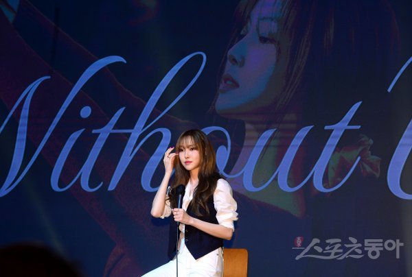 가수 유주가 7일 서울 삼성동 슈피겐홀에서 열린 새 미니앨범 ‘O’ 발매 기념 기자간담회에 참석해 앨범을 소개하고 있다.