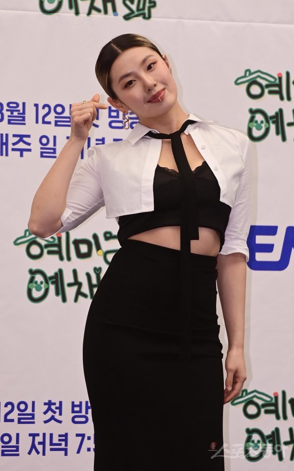 댄서 리정이 9일 서울 마포구 상암동 스탠포드 서울에서 열린 ENA 예능 프로그램 ‘혜미리예채파’ 제작발표회에서 포즈를 취하고 있다.