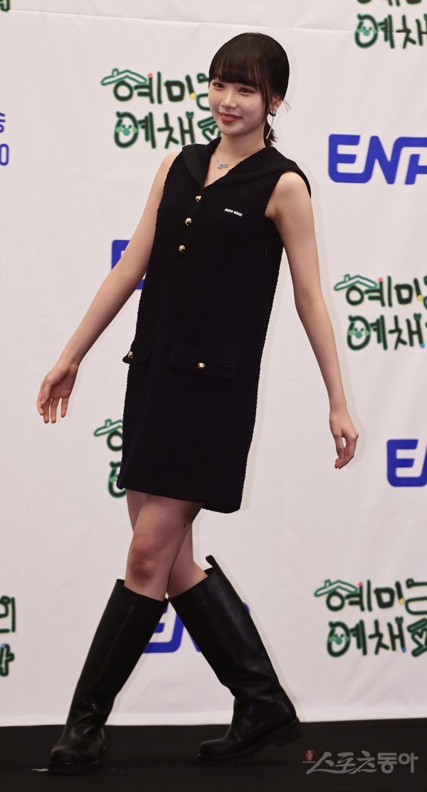 르세라핌 김채원이 9일 서울 마포구 상암동 스탠포드 서울에서 열린 ENA 예능 프로그램 ‘혜미리예채파’ 제작발표회 무대에 입장하고 있다.