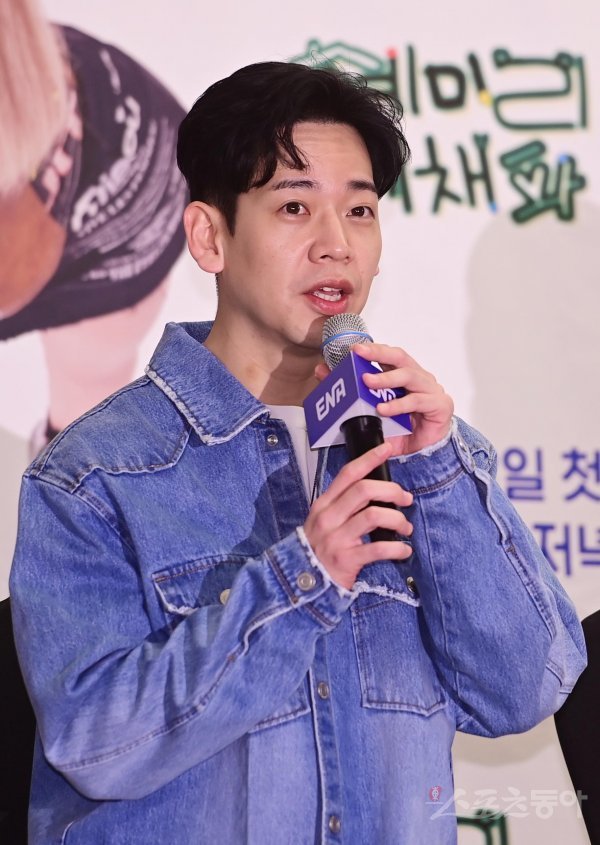 PD 이태경이 9일 서울 마포구 상암동 스탠포드 서울에서 열린 ENA 예능 프로그램 ‘혜미리예채파’ 제작발표회에서 인사말을 하고 있다.