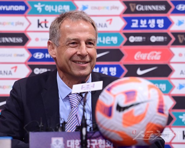 클린스만 신임 감독이 9일 경기도 파주 축구대표팀트레이닝센터(NFC)에서 열린 취임 기자회견에서 취재진의 질문에 답하고 있다.