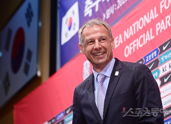 클린스만 신임 감독이 9일 경기도 파주 축구대표팀트레이닝센터(NFC)에서 열린 취임 기자회견에 앞서 포즈를 취하고 있다.