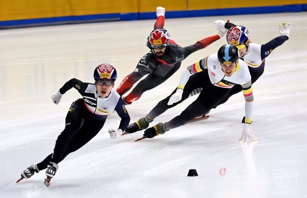 12일 서울 목동 아이스링키에서 열린 ‘2023 KB금융 국제빙상경기연맹(ISU) 쇼트트랙 세계선수권대회’ 남자 1000m 결승전 경기에서 한국 박지원이 빙판위를 질주하고 있다.