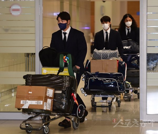 WBC 한국야구대표팀이 2승 2패로 1라운드에 탈락하며 14일 인천국제공항 2터미널을 통해 귀국하고 있다. 한국 박병호가 공항을 빠져나가고 있다.
