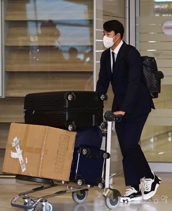 WBC 한국야구대표팀이 2승 2패로 1라운드에 탈락하며 14일 인천국제공항 2터미널을 통해 귀국하고 있다. 한국 정우영이 공항을 빠져나가고 있다.