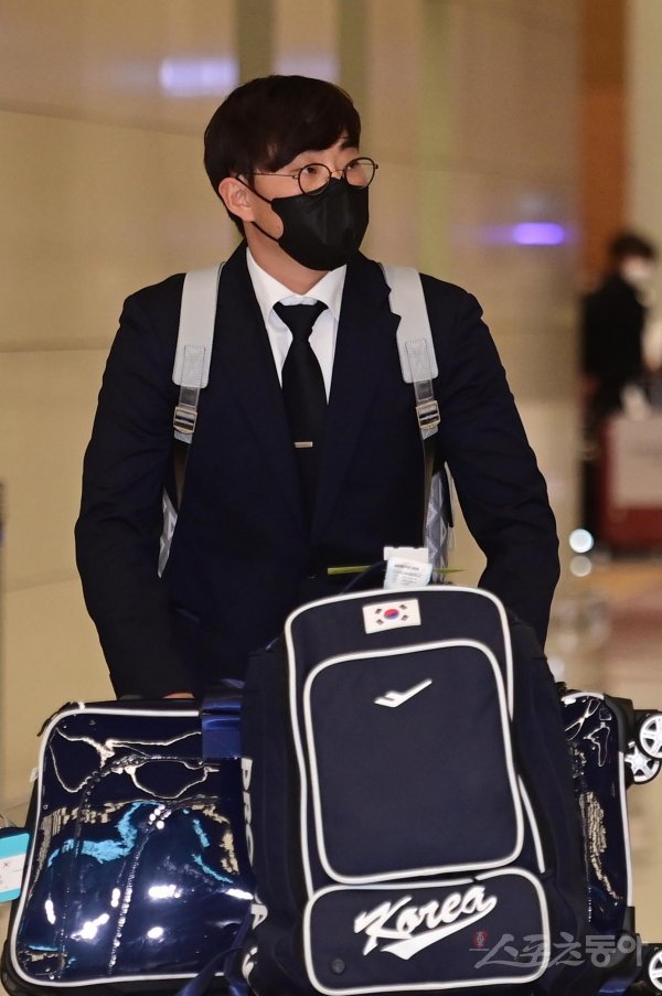 WBC 한국야구대표팀이 2승 2패로 1라운드에 탈락하며 14일 인천국제공항 2터미널을 통해 귀국하고 있다. 한국 박세웅이 공항을 빠져나가고 있다.