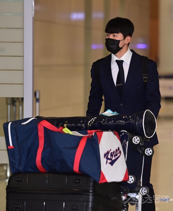 WBC 한국야구대표팀이 2승 2패로 1라운드에 탈락하며 14일 인천국제공항 2터미널을 통해 귀국하고 있다. 한국 김혜성이 공항을 빠져나가고 있다.