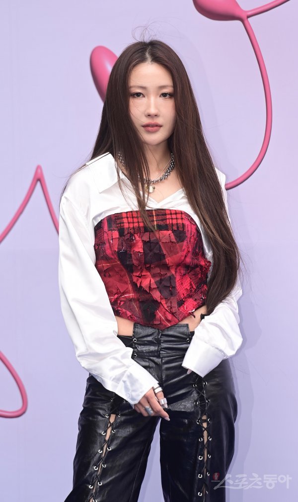 크리에이터 이사배가 15일 서울 중구 동대문디자인플라자에서 열린 ‘2023 FW 서울패션위크’ 얼킨(UL:KIN) 오프닝쇼 포토월에서 포즈를 취하고 있다.