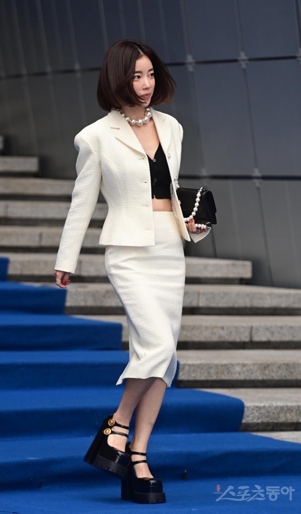 배우 기은세가 15일 서울 중구 동대문디자인플라자에서 열린 ‘2023 FW 서울패션위크’ 라이(LIE) 오프닝쇼 포토월에 오르고 있다.