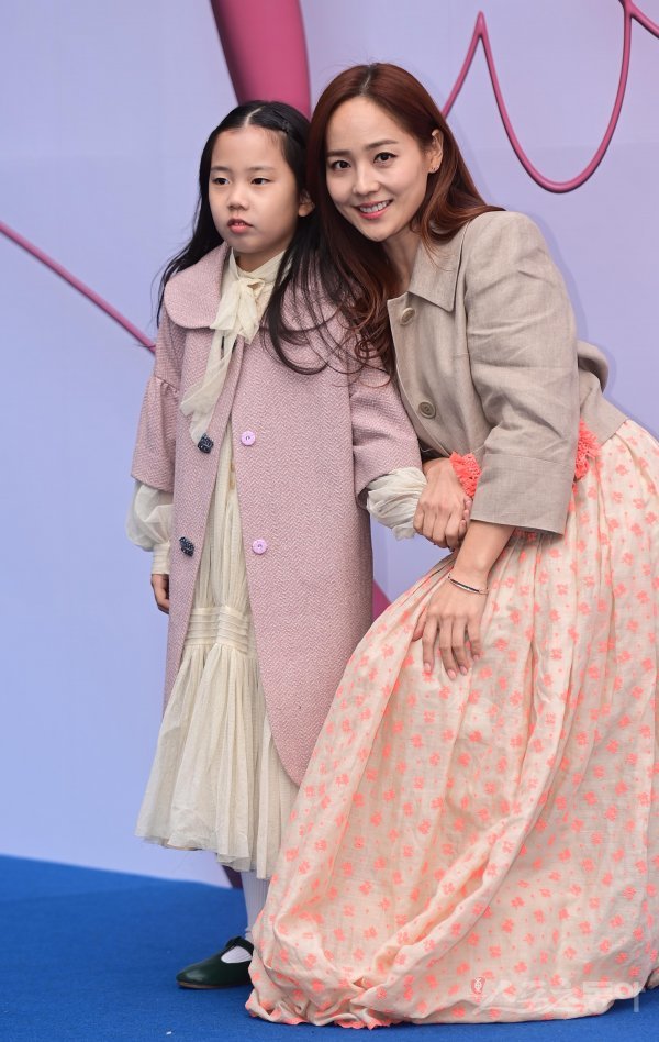 배우 유진과 딸 로희가 16일 서울 중구 동대문디자인플라자에서 열린 ‘2023 FW 서울패션위크’ 미즈지컬렉션(MISS GEE COLLECTION) 포토월에서 포즈를 취하고 있다.