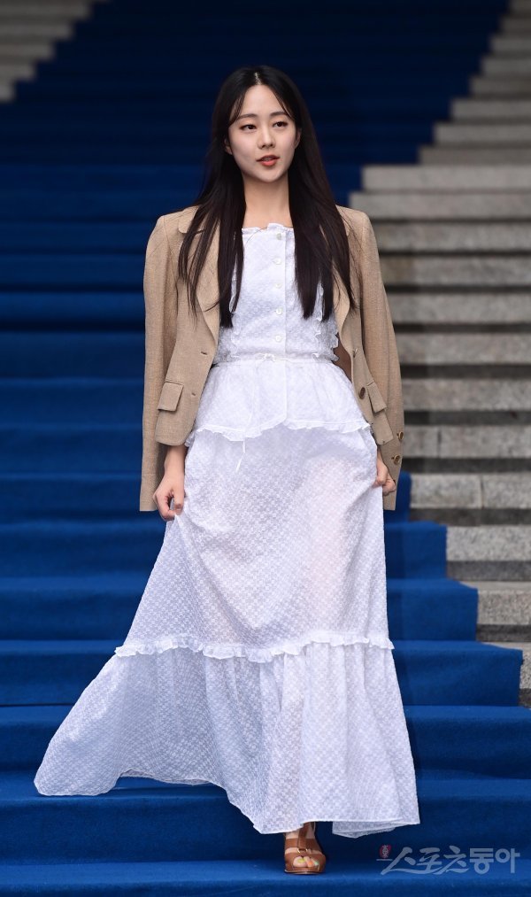 방송인 오영주가 16일 서울 중구 동대문디자인플라자에서 열린 ‘2023 FW 서울패션위크’ 미즈지컬렉션(MISS GEE COLLECTION) 블루카펫을 걷고 있다.