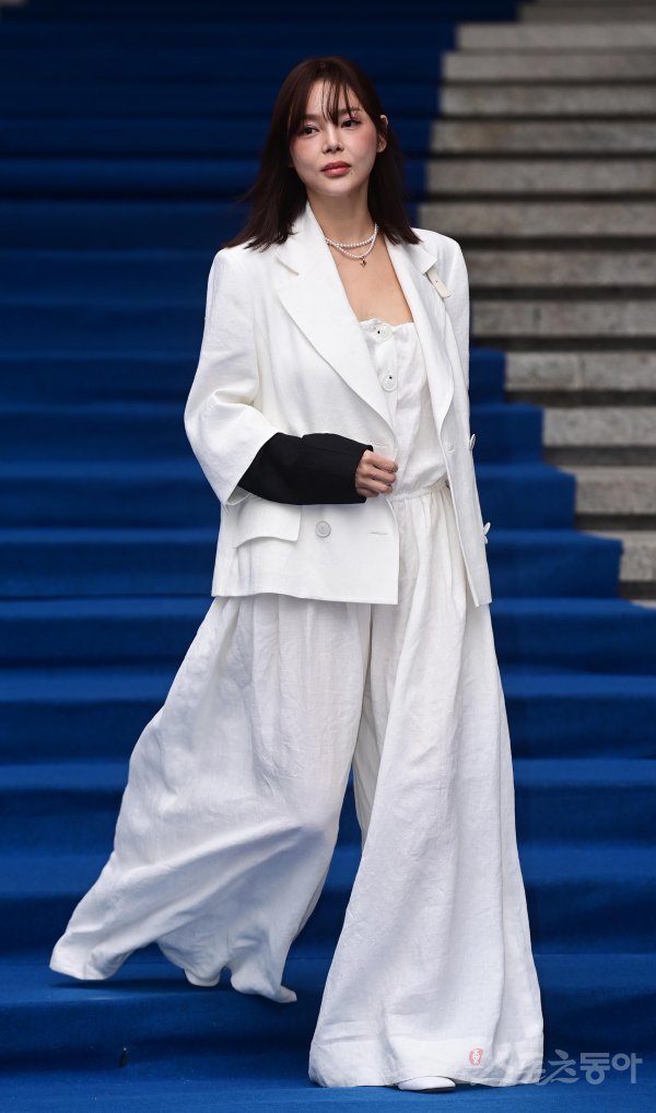 배우 박시연이 16일 서울 중구 동대문디자인플라자에서 열린 ‘2023 FW 서울패션위크’ 미즈지컬렉션(MISS GEE COLLECTION) 블루카펫을 걷고 있다.