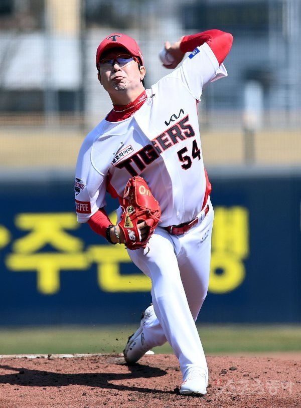 19일 광주기아챔피언스필드에서 ‘2023 KBO리그’ KIA 타이거즈와 두산 베어스의 시범경기가 열렸다. KIA 선발투수 양현종이 힘차게 볼을 던지고 있다.