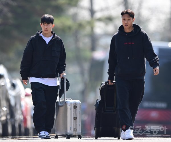 한국축구대표팀이 20일 경기도 파주 축구대표팀트레이닝센터(NFC)에서 콜롬비아와 우루과이의 친선경기에 앞서 소집훈련을 진행했다. 한국 김문환, 백승호가 입소하고 있다.