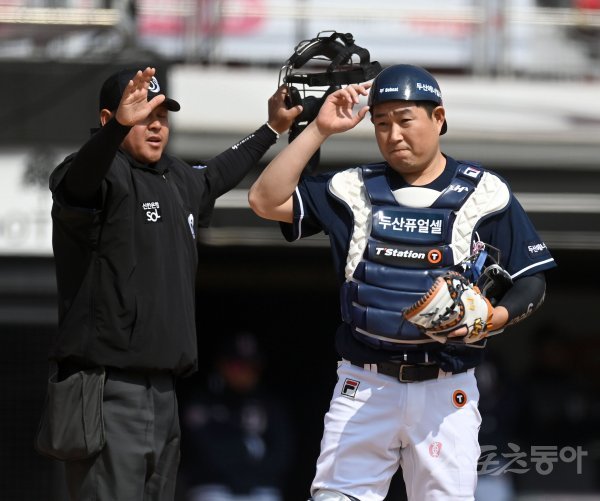 포수 마스크를 쓰고는 6회말 안승한으로 교체될 때까지 알칸타라의 다양한 구종을 확인했다. 2회말 박경수를 삼진으로 잡은 시속 148㎞ 바깥쪽 낮은 코스의 빠른 공은 특유의 프레이밍으로 스트라이크 판정을 받게끔 유도했다. 4회말 1사 1·2루 박병호 타석 때 포일로 실점의 빌미를 제공하기도 했지만, 알칸타라의 강점과 상대 타자의 노림수를 계산해 사인을 내는 등 기민한 리드는 여전했다.