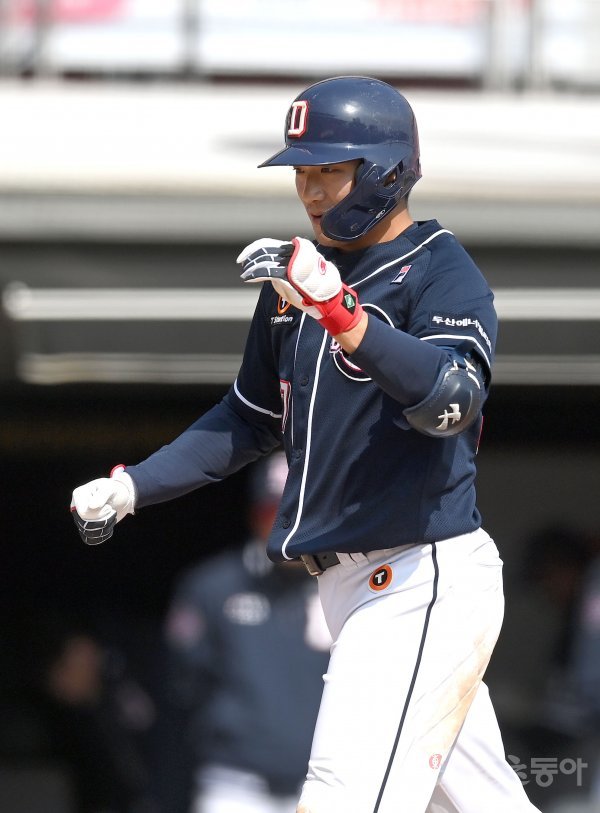 20일 수원KT 위즈파크에서 2023 KBO리그 시범경기 두산 베어스와 KT 위즈 경기가 열렸다. 6회초 무사 두산 김대한이 좌월 솔로 홈런을 날리고 그라운드를 돌아 홈인하고 있다.