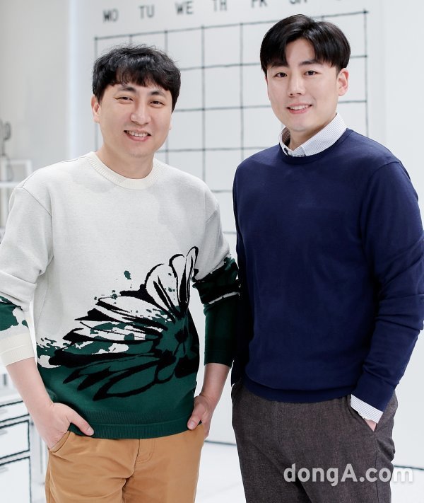 20일 오전 진행된 채널SXMBN 신규 예능 ‘오피스 빌런’ 제작발표회에서 이준규PD와 김성PD가 포즈를 취하고 있다.