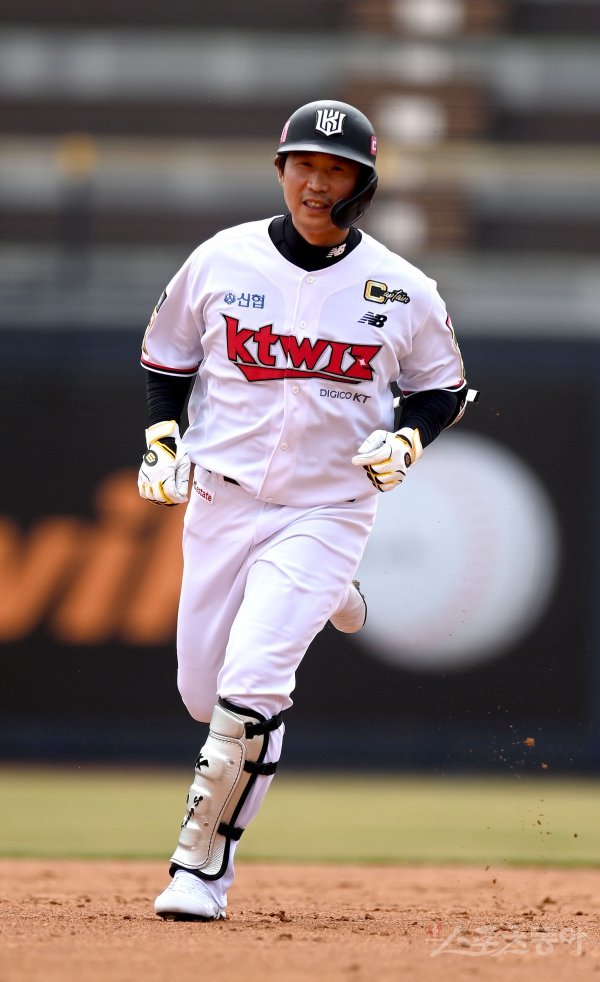 23일 수원KT 위즈파크에서 2023 KBO리그 시범경기 LG 트윈스와 KT 위즈 경기가 열렸다. 3회말 1사 KT 박경수가 동점 중월 솔로 홈런을 날린 후 그라운드를 돌고 있다.