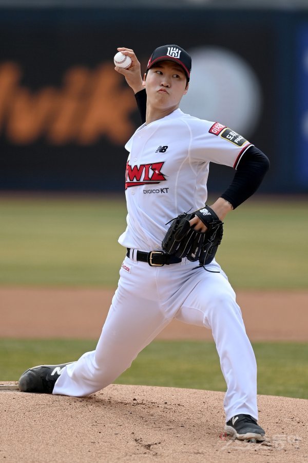 23일 수원KT 위즈파크에서 2023 KBO리그 시범경기 LG 트윈스와 KT 위즈 경기가 열렸다. 선발 투수로 등판한 KT 엄상백이 역투하고 있다.