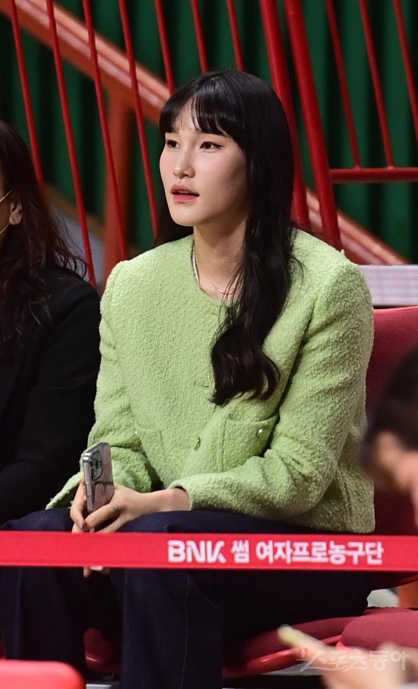 23일 부산 사직종합운동장 실내체육관에서 열린 ‘신한은행 SOL 2022~2023 여자프로농구‘ 부산 BNK와 아산 우리은행의 챔피언결정전 3차전 경기에서 GS칼텍스 안혜진이 응원을 하고 있다.