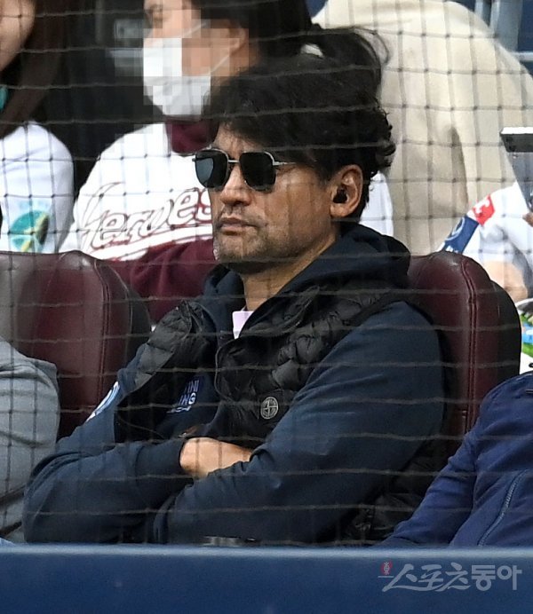 26일 서울 고척스카이돔에서 2023 KBO리그 시범경기 LG 트윈스와 키움 히어로즈 경기가 열렸다. 박찬호가 경기를 관전하고 있다.