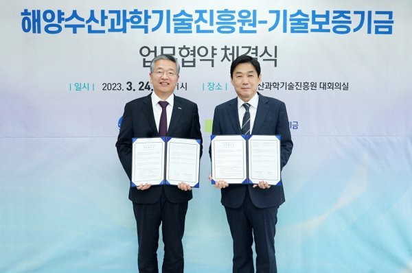 기술보증기금(기보, 이사장 김종호)이 해양수산과학기술진흥원(KIMST)과 함께 중소기업 개방형 기술혁신 지원에 나선다.무상기술이전 위한 전자계약 최초 시연