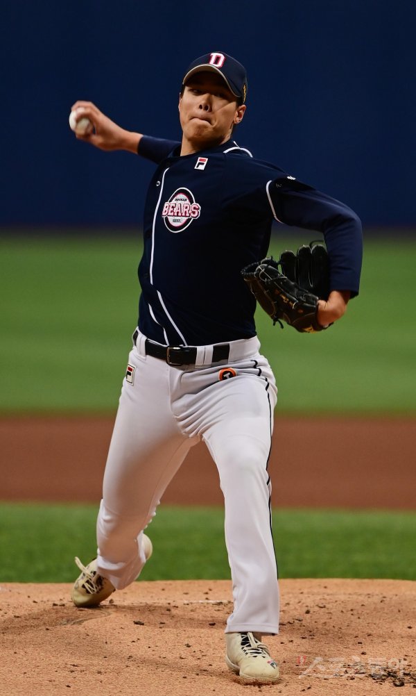 28일 서울 고척스카이돔에서 열린 ‘2023 KBO리그’ 키움 히어로즈와 두산 베어스의 시범경기에서 선발 투수로 마운드에 오른 두산 김동주가 역투하고 있다.