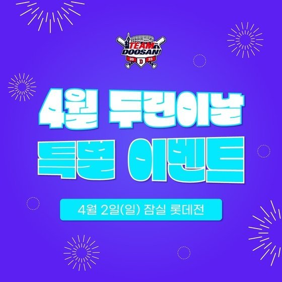 두산 베어스가 4월 2일 오후 2시 잠실구장에서 열릴 롯데 자이언츠전에서 ‘4월 두린이날’ 행사를 진행한다.