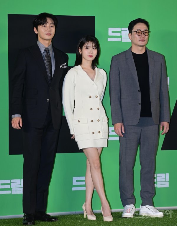 배우 박서준, 아이유, 감독 이병헌이 30일 서울 성동구 성수동 메가박스 성수점에서 열린 영화 ‘드림’ 제작보고회에서 포즈를 취하고 있다.