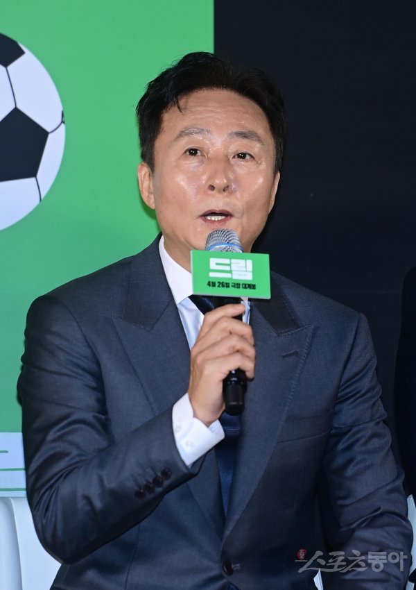 배우 김종수가 30일 서울 성동구 성수동 메가박스 성수점에서 열린 영화 ‘드림’ 제작보고회에서 인사말을 하고 있다.