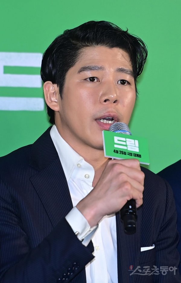배우 홍완표가 30일 서울 성동구 성수동 메가박스 성수점에서 열린 영화 ‘드림’ 제작보고회에서 인사말을 하고 있다.