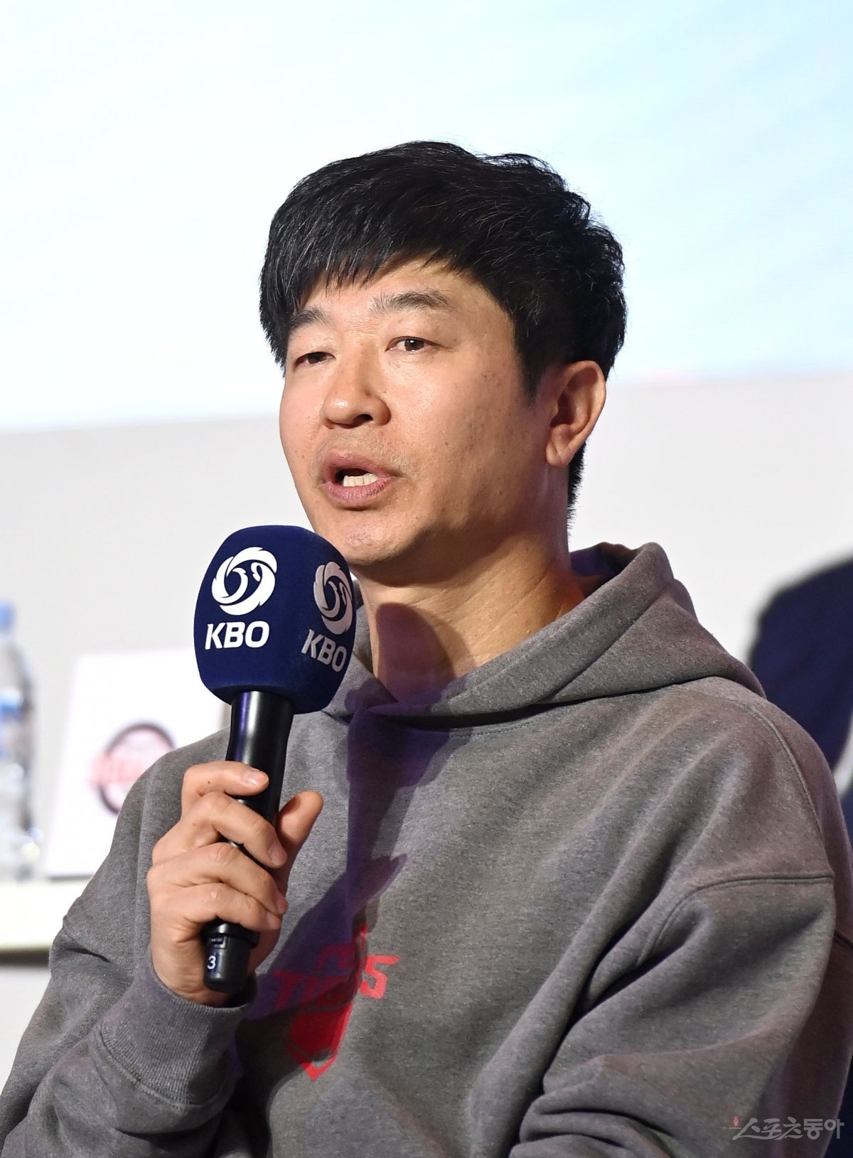 2023 신한은행 SOL KBO 미디어데이가 30일 서울 그랜드하얏트 호텔에서 열렸다. KIA 김종국 감독이 취재진의 질문에 대답하고 있다.
