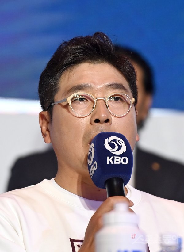 2023 신한은행 SOL KBO 미디어데이가 30일 서울 그랜드하얏트 호텔에서 열렸다. 키움 홍원기 감독이 취재진의 질문에 대답하고 있다.