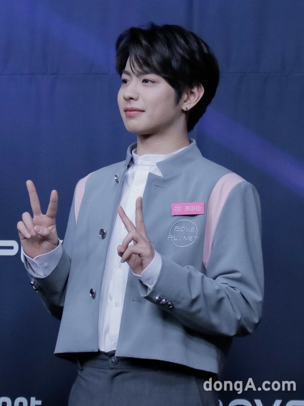 연습생 케이타가 29일 오후 서울 마포구 CJ E&M CENTER에서 열린 Mnet ‘보이즈 플래닛’ 28인 생존자 신고식에서 포즈를 취하고 있다.