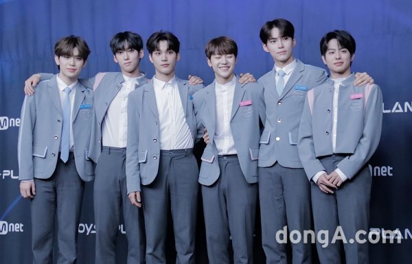 연습생 김태래, 나캠든, 박한빈, 석매튜, 성한빈, 케이타가 29일 오후 서울 마포구 CJ E&M CENTER에서 열린 Mnet ‘보이즈 플래닛’ 28인 생존자 신고식에서 포즈를 취하고 있다.