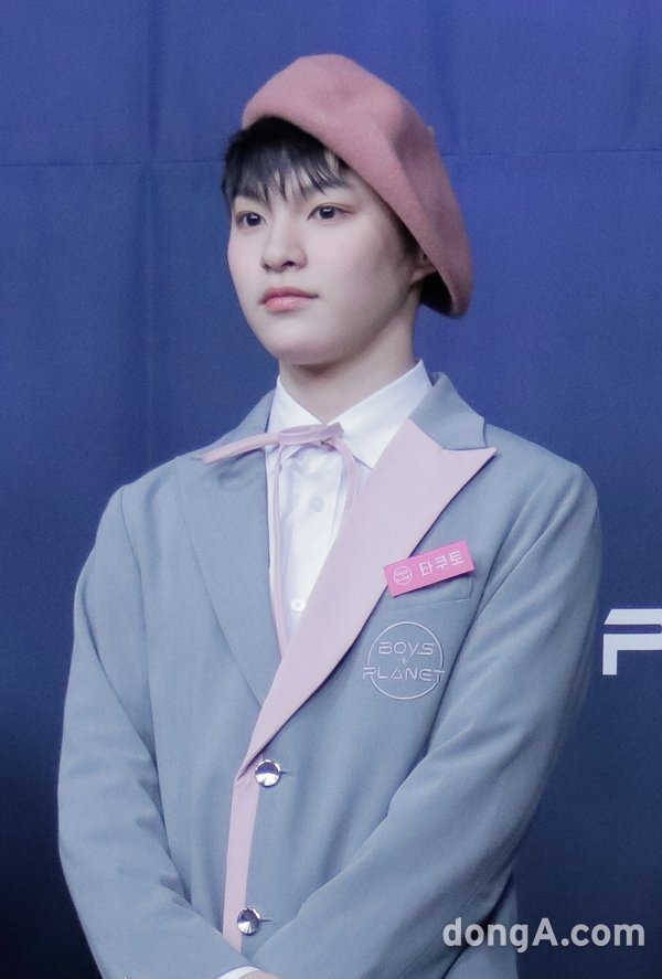 연습생 타쿠토가 29일 오후 서울 마포구 CJ E&M CENTER에서 열린 Mnet ‘보이즈 플래닛’ 28인 생존자 신고식에서 포즈를 취하고 있다.