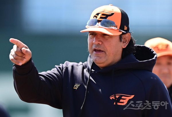 9일 대전 한화생명이글스파크에서 열린 ‘2023 신한은행 SOL KBO리그’ 한화 이글스와 SSG 랜더스의 경기에 앞서 한화 수베로 감독이 선수들의 훈련을 지켜보고 있다.
