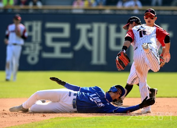 9일 서울 잠실야구장에서 ‘2023 신한은행 SOL KBO리그’ LG 트윈스와 삼성 라이온즈의 경기가 열렸다. 7회초 1사 1, 3루에서 삼성 구자욱이 2루 도루를 성공시키고 있다.